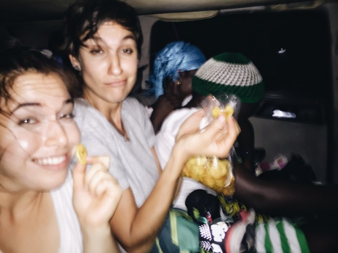 Jutting her chin forward, Anna yelled at our taxi driver in French, “Monsieur. SLOW DOWN. WE DO NOT WANT TO DIE TONIGHT!” He paused momentarily (not from driving 60 mph, but from slapping the inside of his windshield with an old t-shirt) to howl with devious laughter and swerve to miss an innocent goat. We opted to depart the taxi well before our destination.